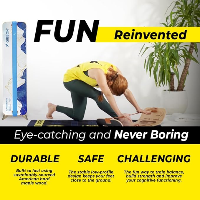 GIBBON SlackBoard - GiBoard Balance Board Kids & Adults - Slackline Balance Trainer - Slack Board Core Workout Equipment Home Gym Training - Standing Desk Exercise - Yoga, Agility, Pilates & More