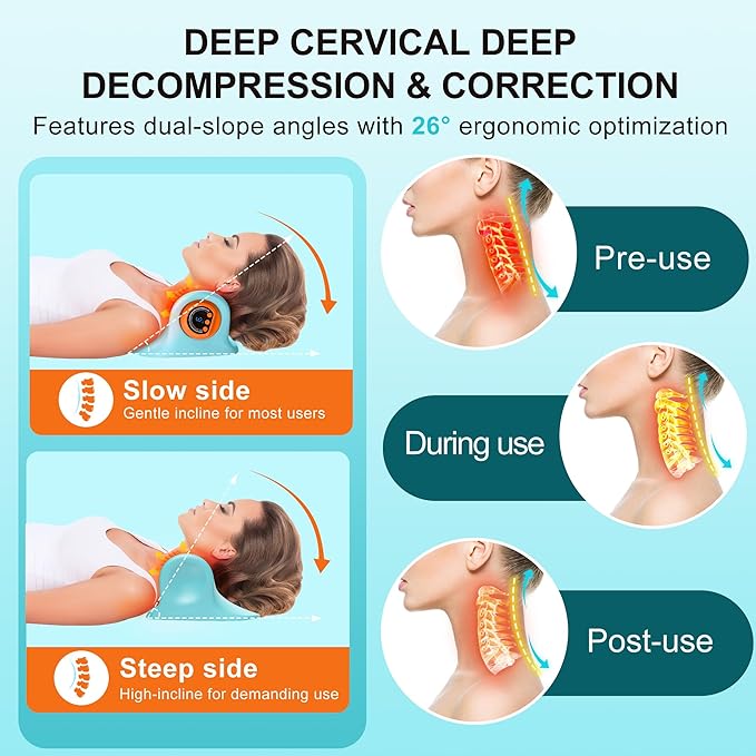 - Heat Therapy: Soothing heat function combined with neck massage for enhanced muscle relaxation and comfort