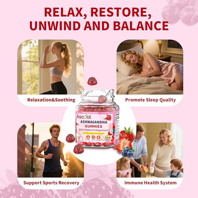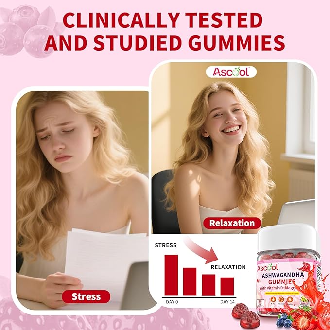 - Sugar-Free & Delicious:Tasty mixed-berry ashwa gummies with zero sugar and all-natural ingredients. A superior option compared to ashwagandha capsules, liquids, or powders, making daily stress relief enjoyable.