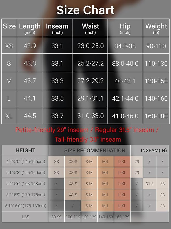 - YEOREO Leggings Tips: Petite-friendly 29" inseam / Regular 31.5" inseam / Tall-friendly 33" inseam. For a snug fit, we recommend sizing down; For a relaxed feel, stick to your usual size or size up