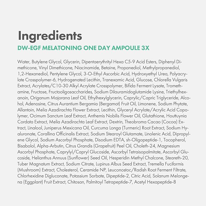 - VISIBLE RESULTS ON STUBBORN CONCERNS. Powered by DW-EGF Peptide, refined to 99%* purity for skincare use, this advanced Korean serum ampoule provides nourishment that supports a visibly refined appearance. With consistent use, skin looks clearer, smoother, and dull areas gradually regain a fresher look.