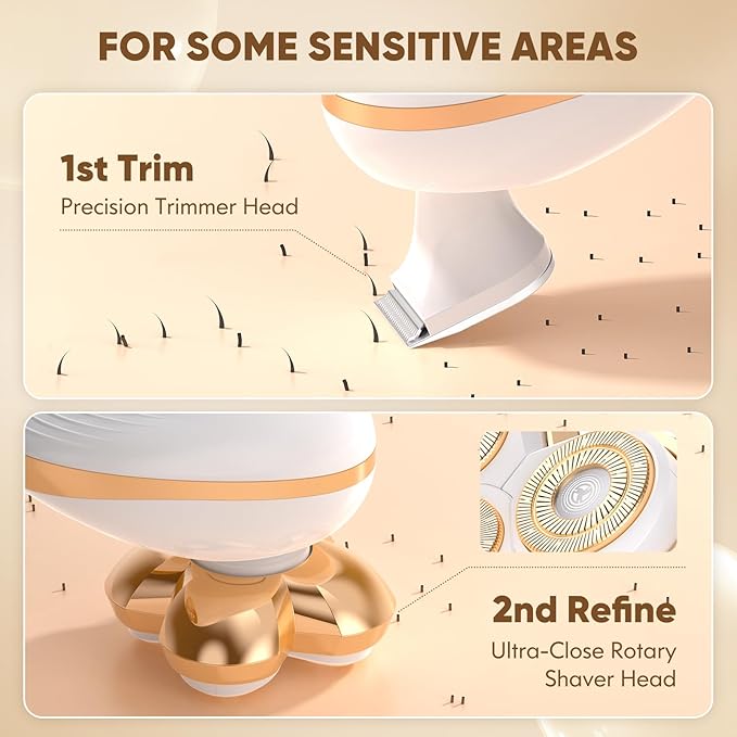 - ๐๐ ๐๐ฅ๐ญ๐ซ๐ ๐ ๐ฅ๐จ๐๐ญ๐ข๐ง๐ ๐๐๐๐: This 5D floating shaving head is specifically designed to follow the curves of our face, body and legs, remove unwanted hair every where we wanted. Dual-layer precision blades enhance hair removal efficiency by capturing more and shorter hairs in a shorter amount of time