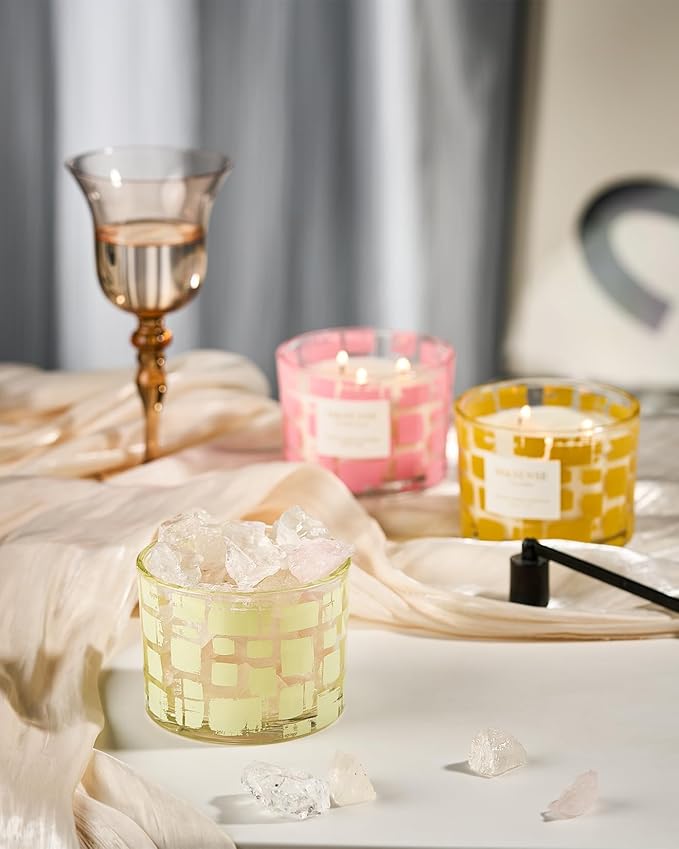- LUXURY GLASS CANDLE - Designed to burn cleanly and infuse your home with exceptional scent, this candle elevates everyday living and entertaining. It is housed in a glass vessel etched with Irregular checkered pattern that complements any decor.