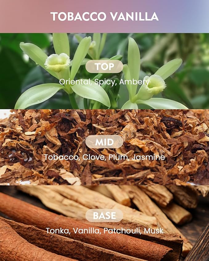 M&SENSE Tobacco Vanilla Scented, Soy Wax 11.6oz 60 Hours Clean Non Toxic Slow Burn,3 Wick Highly Scented Aromatherapy Candles for Relaxation, Holiday Gifts for Men&Women