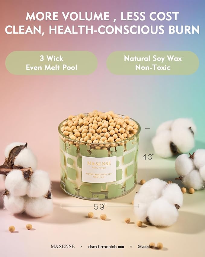 - About M&SENSE: Since our establishment in 2009, M&Sense has been dedicated to crafting premium candles that merge quality with design; Utilizing natural wax and premium essential oils, our candles are created in a variety of stylish designs to cater to a wide range of fragrance preferences, enhancing the elegance of your living space