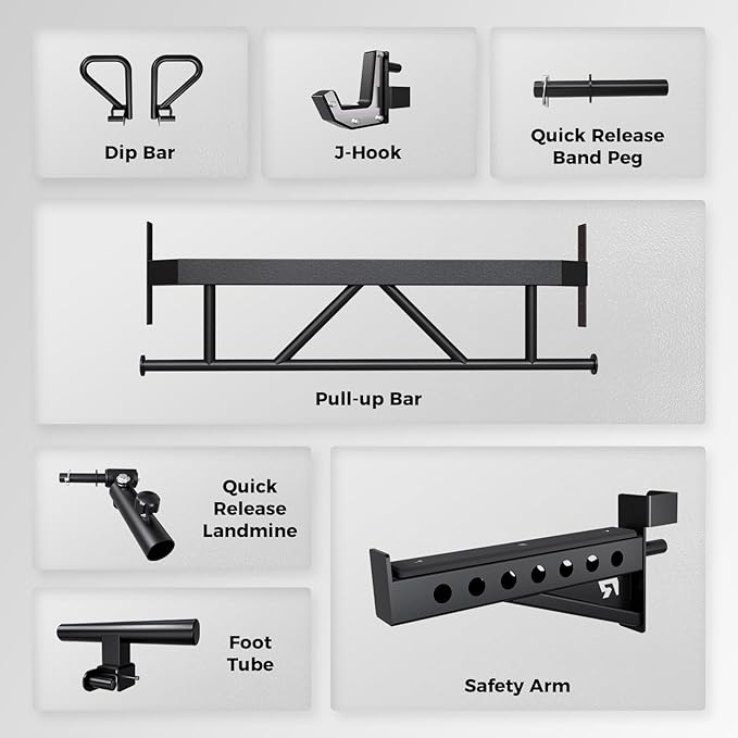 - Commercial-Grade Design, Home-Use Convenience: Built with commercial-grade 2.36"x2.36" 13-gauge steel supporting 2000lbs capacity. 16 adjustment levels offer millimeter-level precision positioning with anti-slip J-hooks and triangular safety bars. Compact design requires only 22.8ft² space, delivering gym-level experience at home