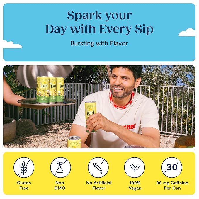 - Adaptogenic Super-Blend - Dive into a bubbly fusion of ashwagandha, reishi mushroom, lion’s mane, acerola cherry, and green tea. Juni is an invigorating drink crafted to renew your energy, calm your mind, and support overall well-being