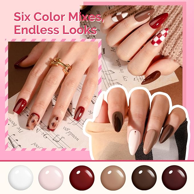 - 【Nude Neutral 6 Colors Gift Set】 This cozy, earthy palette features warm shades of mocha, dark chocolate, soft brown, and creamy beige—perfect for fall/winter fashion and the trendy "latte makeup" look. Featuring a highly pigmented formula, it delivers rich, opaque coverage with just 2 coats. Get that clean, feminine, and polished style easily, perfect for gifting to friends, family, or treating yourself.