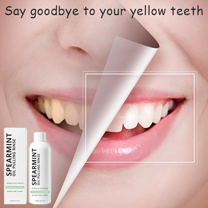 White Spearmint Oil Pulling Rinse, Cold-Pressed Coconut Mouthwash for Teeth Whitening, Powerful Organic Peppermint Oil Maintain Gum Health & Freshness Breath, Mint Mouthwash (8 fl oz)