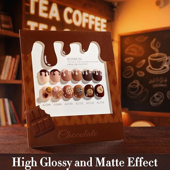 Double Rhythm 6 Pcs 15 ML Gel Polish Set Same Color Same Bottle Soak Off Gel Polish Kit Nail Art Manicure Salon DIY at Home for Women (Burgundy Cherry Brown Coffee -T6-69)