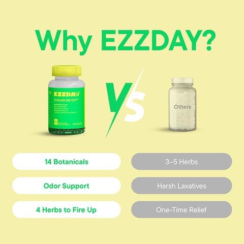 - Comprehensive Colon Cleanse & Constipation Relief | Beyond short 14-day cleanses, EZZDAY Colon Detox offers daily gut support with RenewElixir 10-in-1 herbal blend plus probiotics & prebiotics for lasting digestive health.
