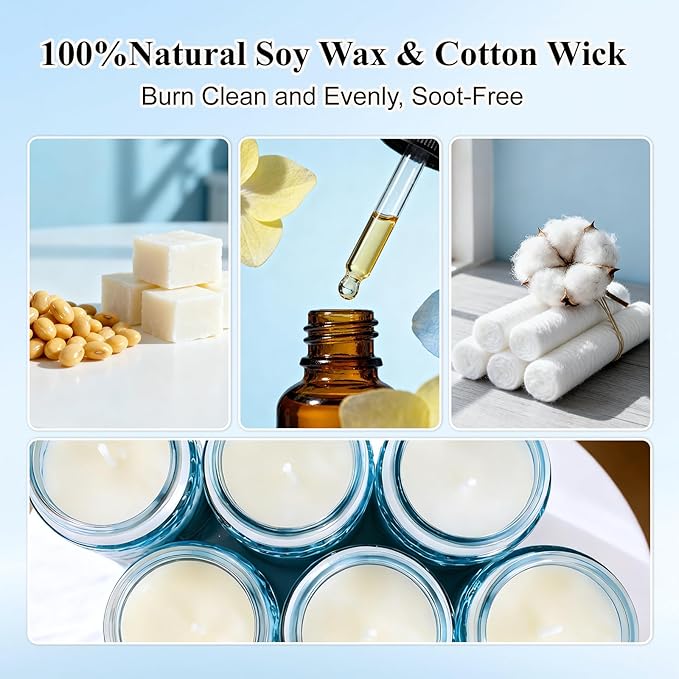 Lake Blue Candles for Home Scented, 6 Pack of 5.5 Oz Natural Soy Wax Candles in Decorative Glass, Home Aromatherapy Gifts Sets for Women Birthday Christmas Refresh & Relaxation
