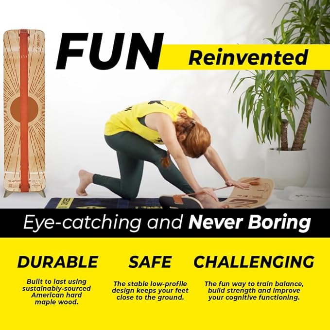 - STEADY & SECURE GRIP: Made from high-quality American maple wood and proudly crafted in North America, the SlackBoard Plus is designed for durability and performance. Its cork bottom ensures the standing board has a solid grip on hardwood floors, carpets, or even outdoor patios. Whether you’re doing a core workout in the living room or energizing your home office routine, this balance board trainer is built to handle it all.