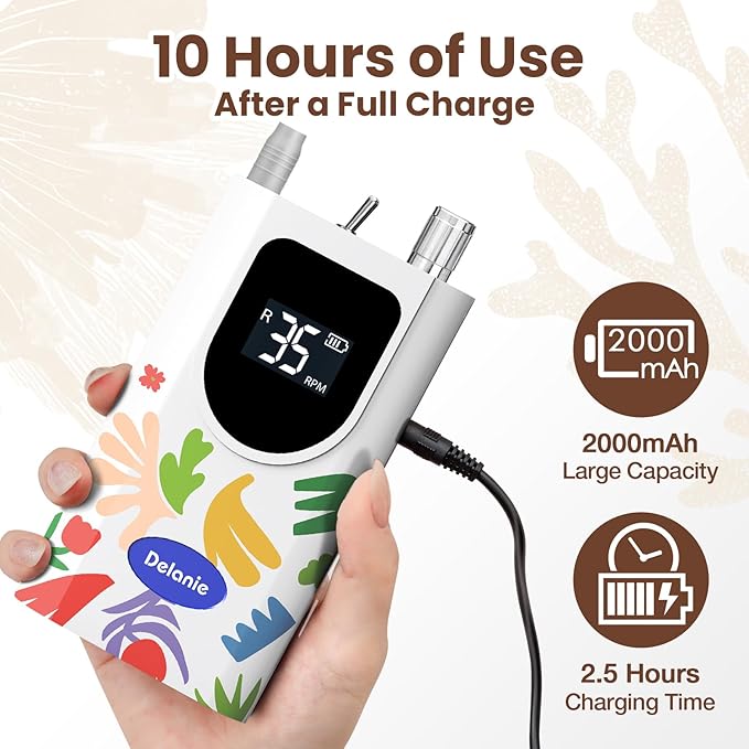 - Low Noise & Vibration: Delanie's high-precision bit locking mechanism ensures that drill bits are securely mounted on the handpiece to achieve great rotational stability and impressively low vibration, and helps you perform more precise operations