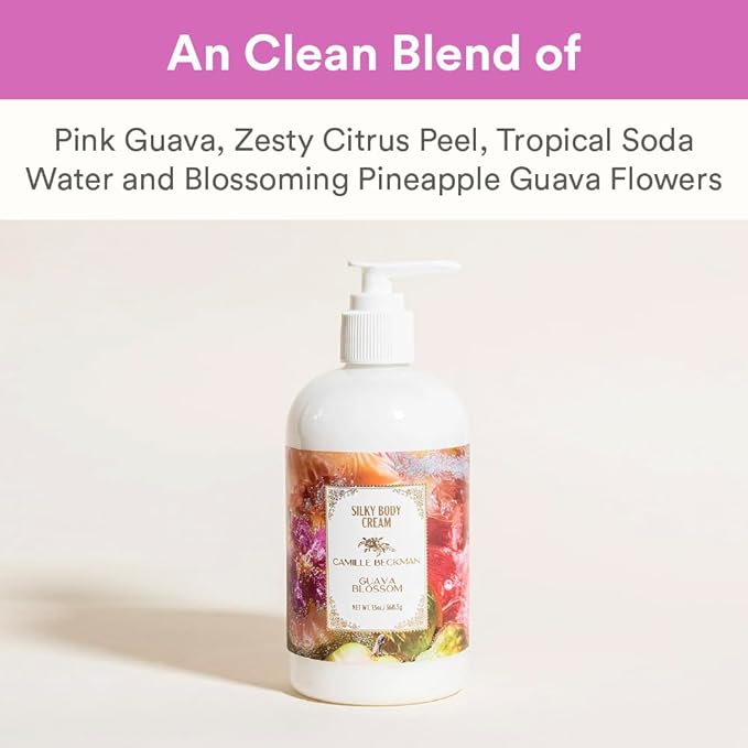Camille Beckman Guava Blossom Scented Silky Body Cream, Daily Moisturizer for All Skin Types | Non-Greasy Vegan Formula to Nourish and Soften Hands and Body, 13 Ounce