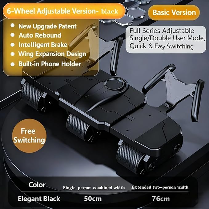2025 New Ab Six Wheel Roller with Elbow Support - Automatic Rebound Abdominal Wheel Roller, The Upgraded Version For Dual Use Six -Wheel Abdominal Wheel Core Workout Equipment Home Gym Abs Machine
