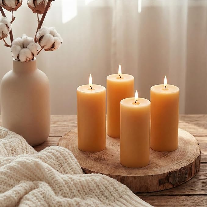 - 100% Natural Beeswax Candles: For homeowners seeking a natural and wholesome way to light up their living spaces, beeswax candles are an ideal choice. Crafted from organic beeswax, these pillar candles are known for their long burning time and beautiful, warm glow. Unlike paraffin candles, beeswax candles release negative ions when burned, which actually purify the air by neutralizing pollutants and odors. This means that not only do they provide a soft, comforting light, but they also contribute to a healthier indoor environment.
