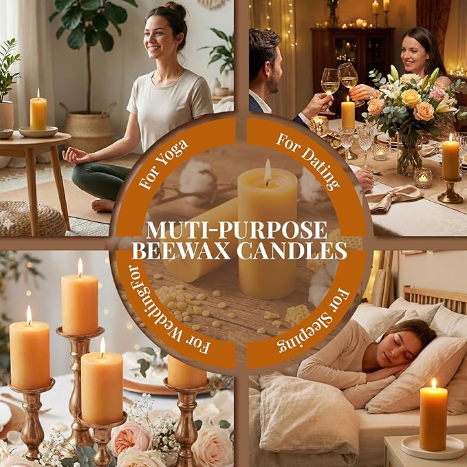 - 140-Hour Long Burning Time: Beeswax pillar candles have become the ideal lighting choice for emergencies due to their efficient, eco-friendly, and durable characteristics. Whether it's due to natural disasters, power outages, or other emergencies, these candles can provide a safe and reliable source of light. Each beeswax pillar can slow-burn for 35 hours, ensuring long-lasting illumination. Beeswax candles burn with almost no smoke, which is particularly important for indoor lighting in emergencies. They are brighter, cleaner, and longer-lasting than other types of candles..