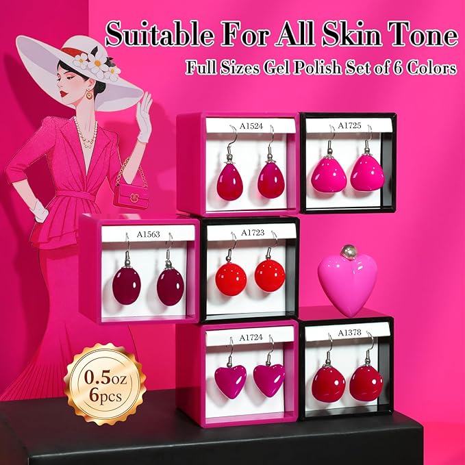 - 6 Pcs Same Color Same Bottle Gel Polish: 6pcs 15ml gel polish for all season, need to be cured under UV or LED Lamp for 60-120s. Must apply with Base Gel and Top Coat. Please shake the bottle or warm it with hot water before use, to acheive a better effect.