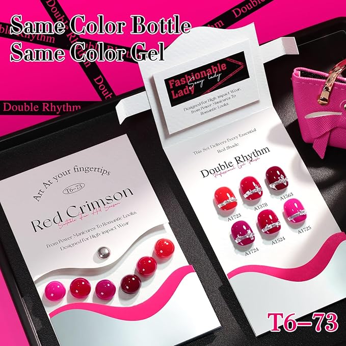 Double Rhythm 6 Pcs 15 ML Gel Polish Set Same Color Same Bottle Soak Off Gel Polish Kit Nail Art Manicure Salon DIY at Home for Women (Burgundy Cherry Rose Purple -T6-73)