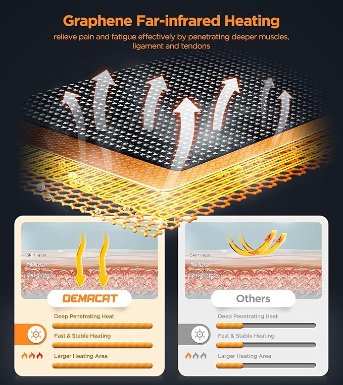 - ππππ§ππ‘π π‘πππ π£πππ‘ π₯ππππ«ππ₯ - Prolonged desk work and poor posture can lead to muscle stiffness, neck and shoulder pain, headaches, and dizziness. These discomforts often result in poor sleep and overall decreased well-being. But don't worryβour specially designed neck relaxer with a soothing heating function is here to help. Our neck relaxer features an innovative addition: expensive graphene heating material for faster heat generation and more stable temperature control. No matter the season, the hot compress enhances the effectiveness of the massage, providing superior relief and comfort.