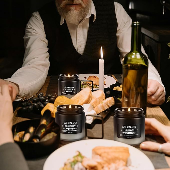 - Natural Soy Wax & Smokeless Burn Made from natural soy wax, these candles burn cleanly and evenly without soot or toxins. The long-lasting formula ensures hours of enjoyment, ideal for creating a relaxed ambiance during evenings or gatherings.
