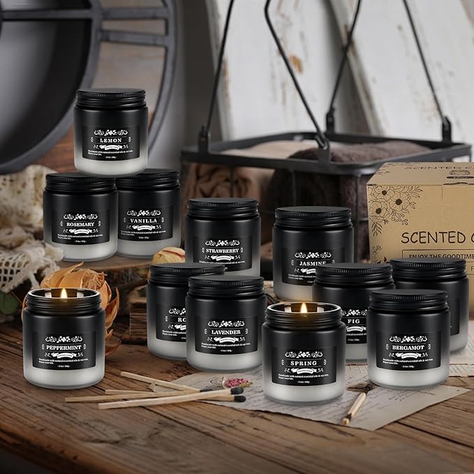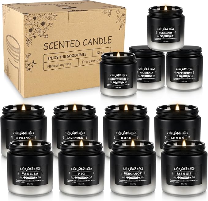 12-Pack Scented Candles Set - Men Candles for Home Scented, 3.5oz Soy Wax, Long Lasting Candle, Soy Candle Gifts Set for Men, Birthday, Valentine, Christmas, Anniversary Present