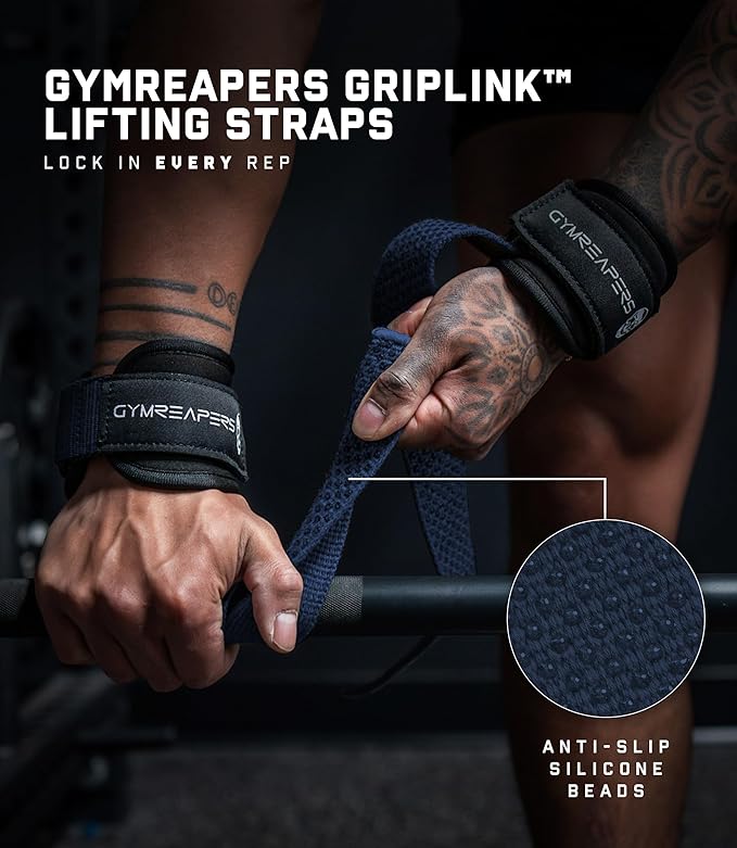 - GYMREAPERS GRIPLINK LIFTING STRAPS – We built the Gymreapers Griplink Wrist Straps for lifters who refuse to let grip fatigue limit their performance. When the weight gets heavy and focus matters most, you need gear that supports your strength without getting in the way. These straps were made to give you total control by locking you into every cable movement, row, pull and deadlift with ease. The goal is to help you lift more, train harder, and push past the point where your grip gives out so you can focus on building real strength and results.