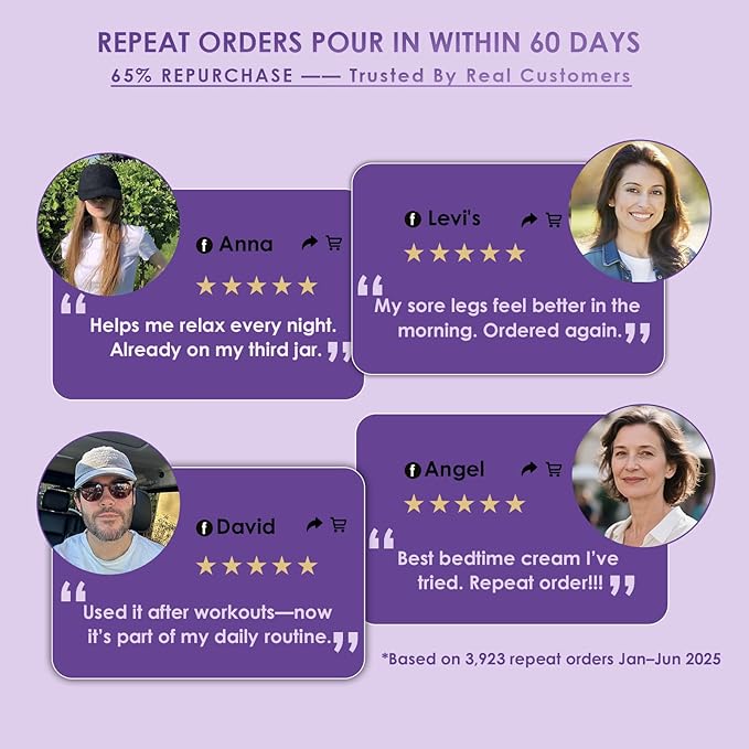 - Nighttime Magnesium Lotion for Legs & Feet — A soothing, fast-absorbing magnesium cream designed for your bedtime routine. Gently massage onto legs, calves, or feet to help promote relaxation and overall comfort before sleep, without a greasy or sticky feel.